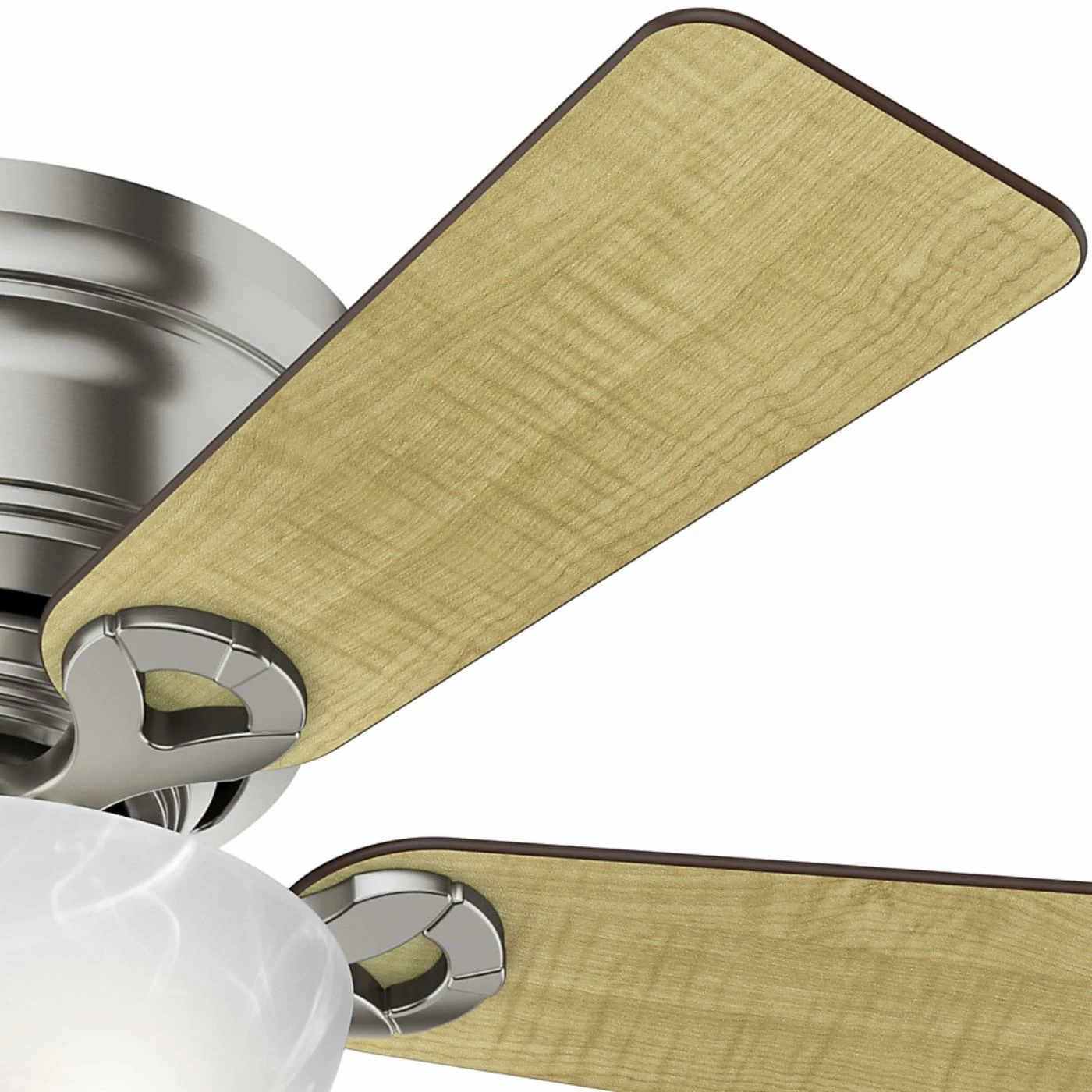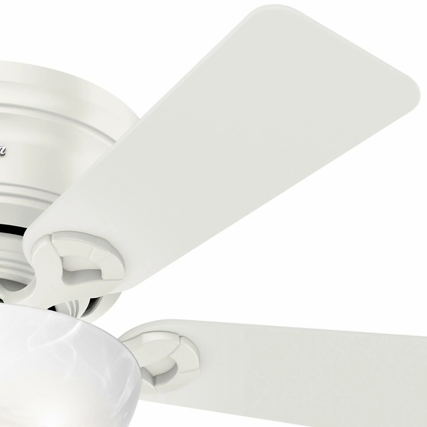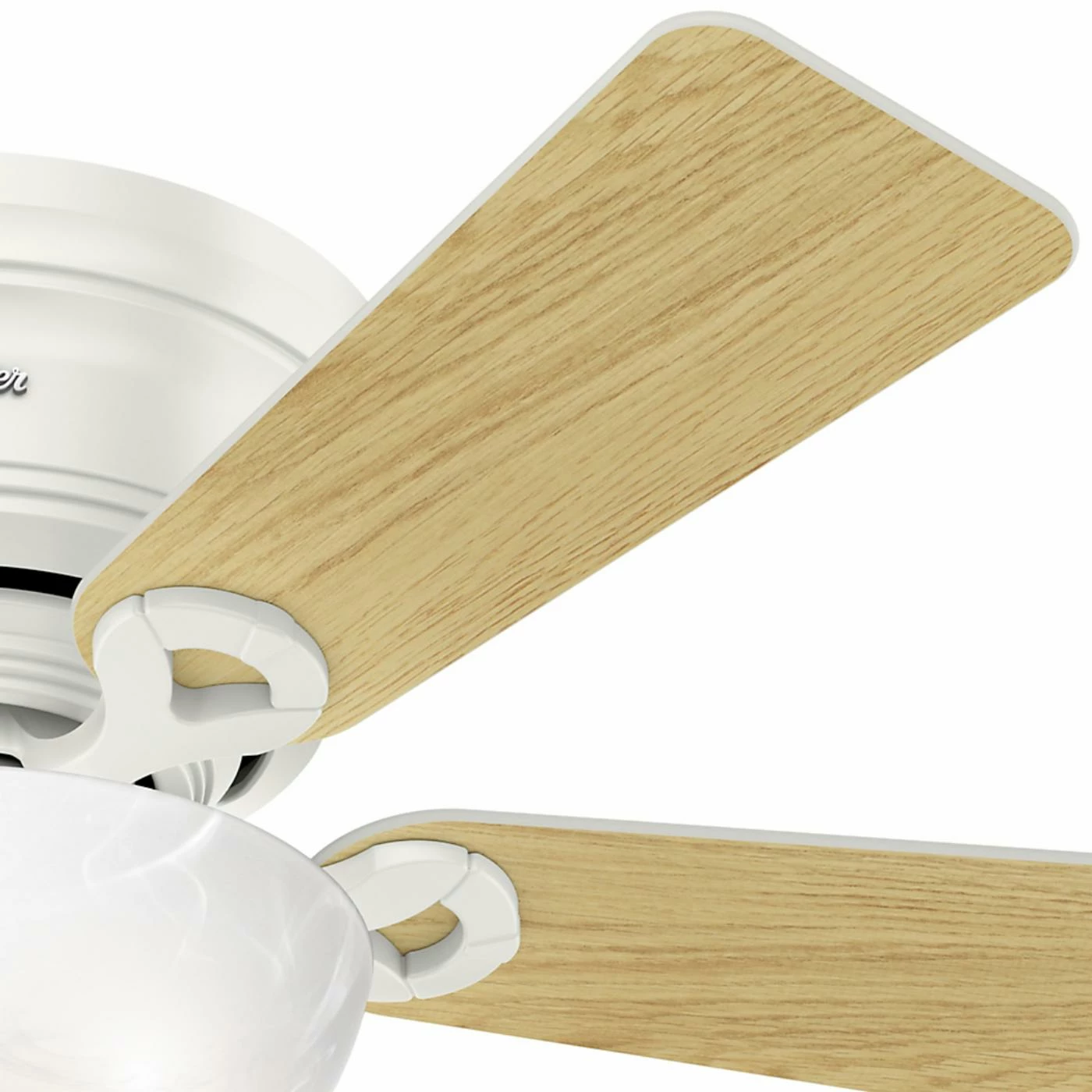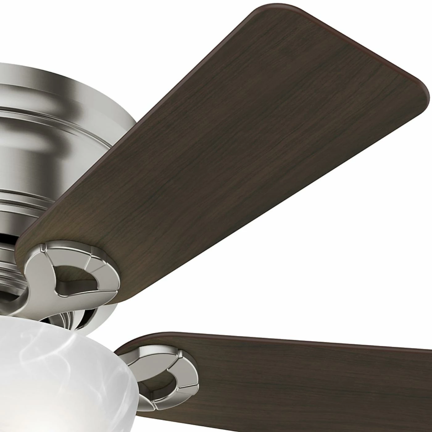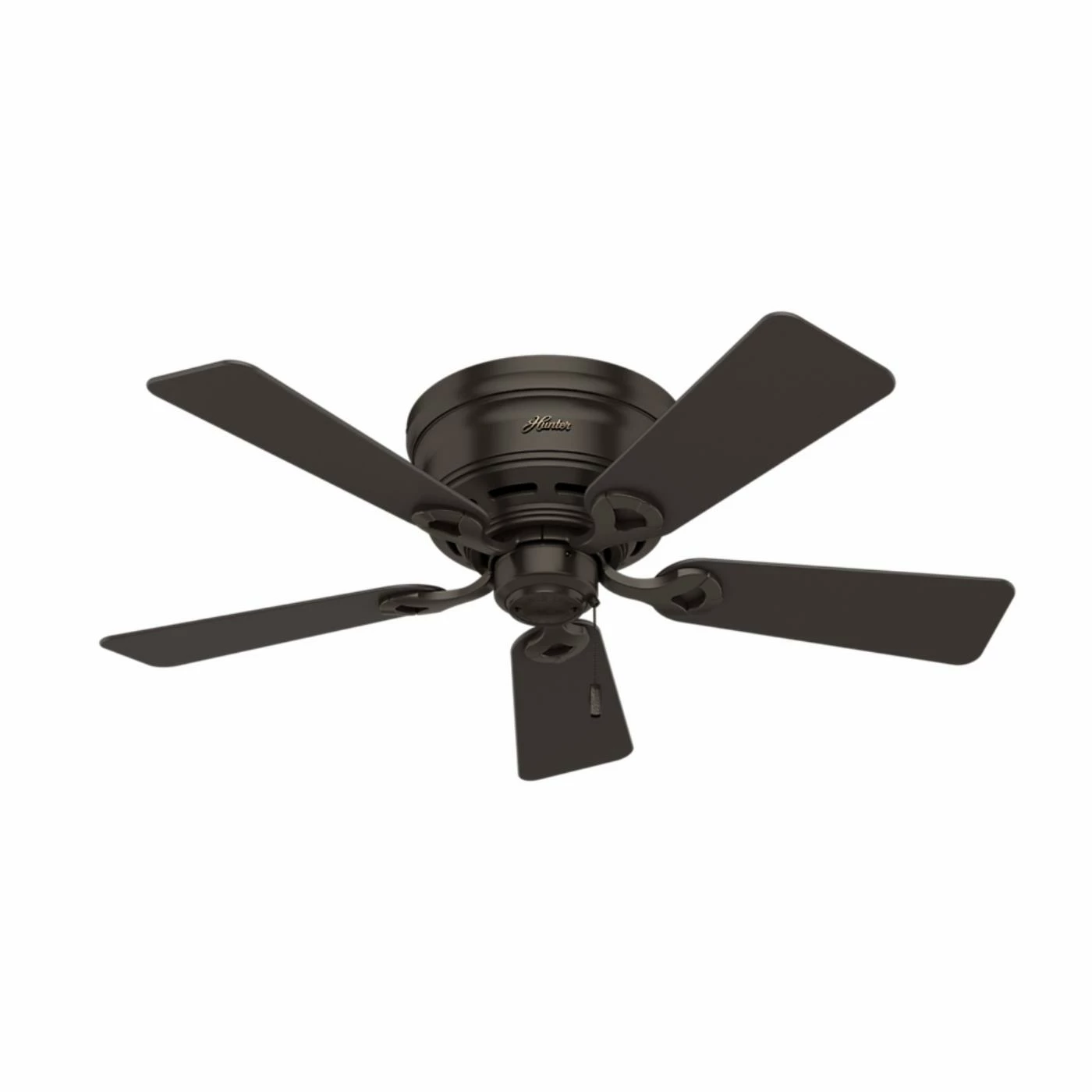 If you have low ceilings, the Hunter 42 in. Haskell Reversible Blade Indoor Ceiling Fan with Lightis a great option for you to keep your home cool. Its low profile mount allows this ceiling fan to hang flush, even in rooms with lower ceilings. The fan’s motor has WhisperWindβ’ technology, which quietly optimizes air flow in your home. Two incandescent, 60-watt lightbulbs are included, along with a marbled glass bowl kit. Choose from available finishes to find the ceiling fan that works best for your home.
