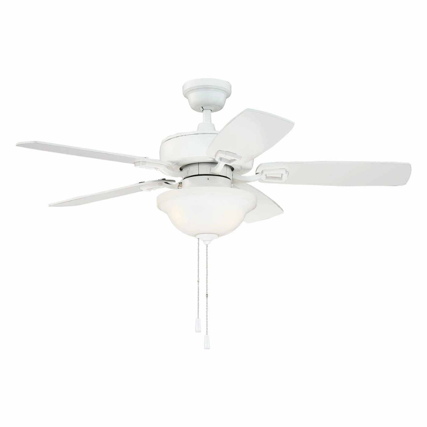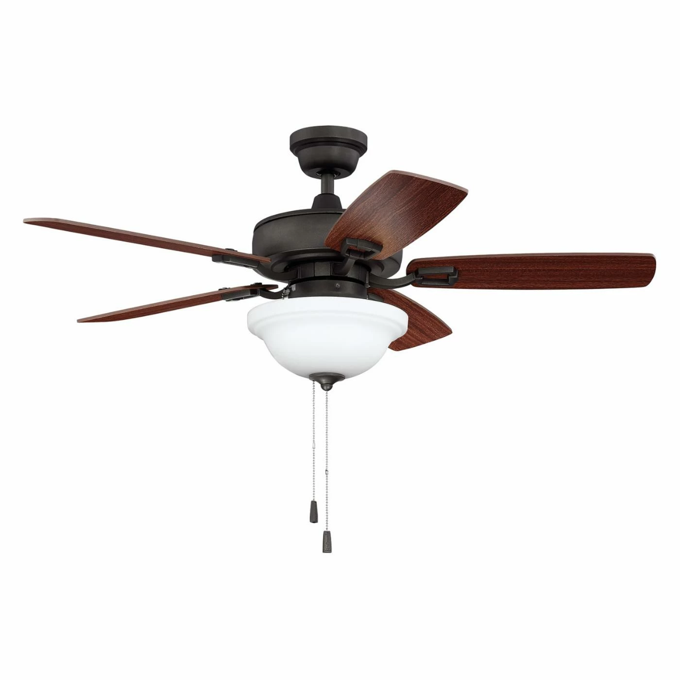 Enhance your living space with the Craftmade Twist N Click 42 in. Indoor Ceiling Fan with Light Kit. This ceiling fan features a high-quality steel construction and a durable three-speed reversible motor, allowing you to easily select your desired setting. It will arrive with its LED light kit in tow. Choose from our available finish options when placing your order.