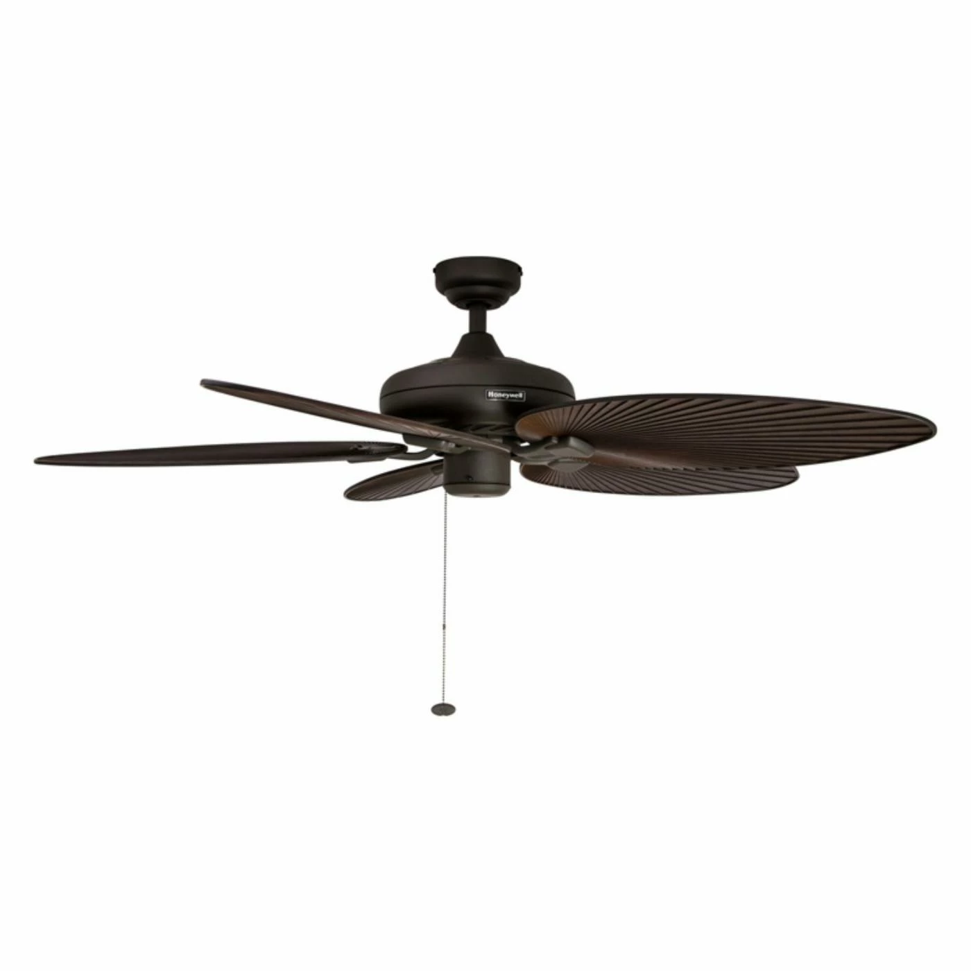 - Palm-shaped blades for a coastal feel; oiled bronze finish