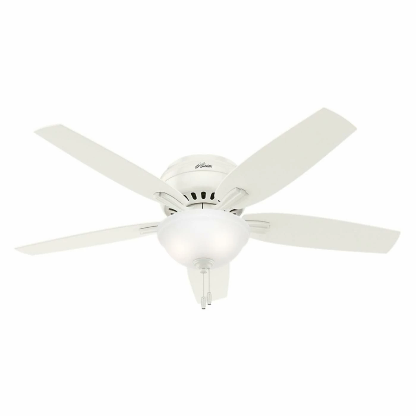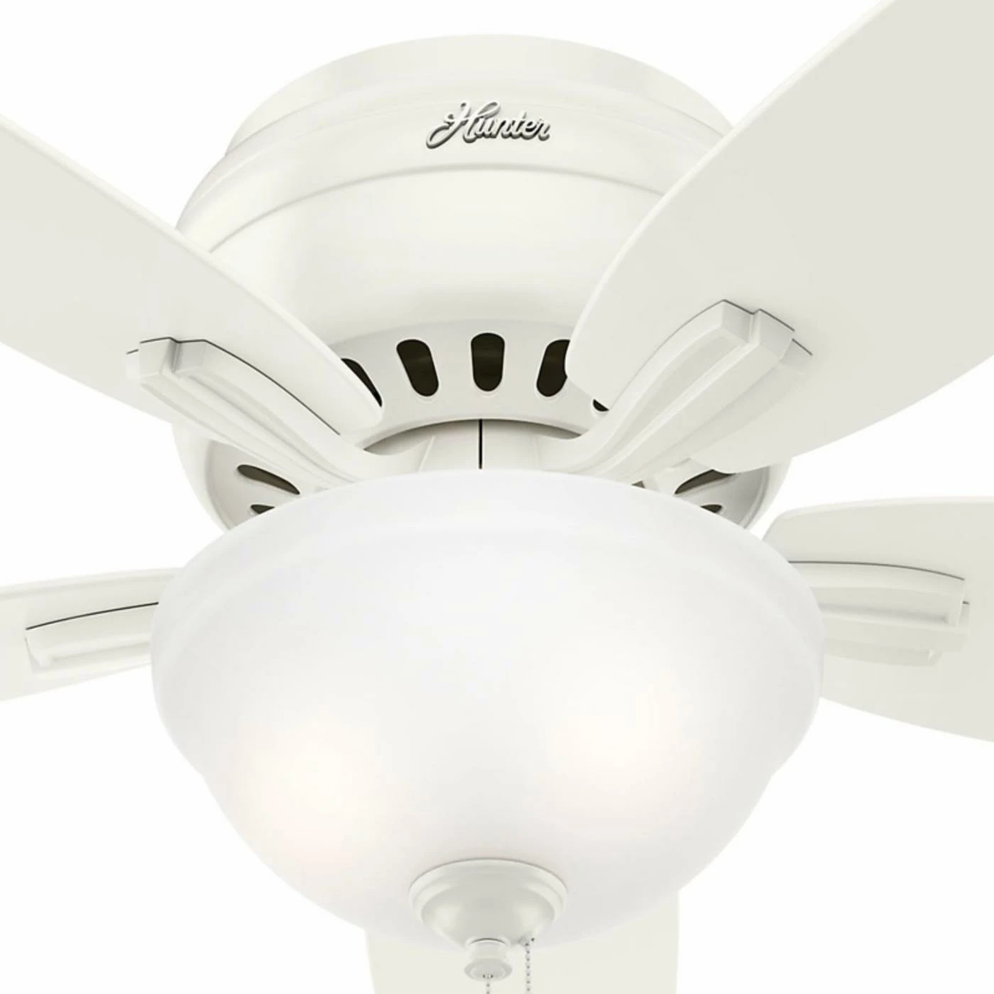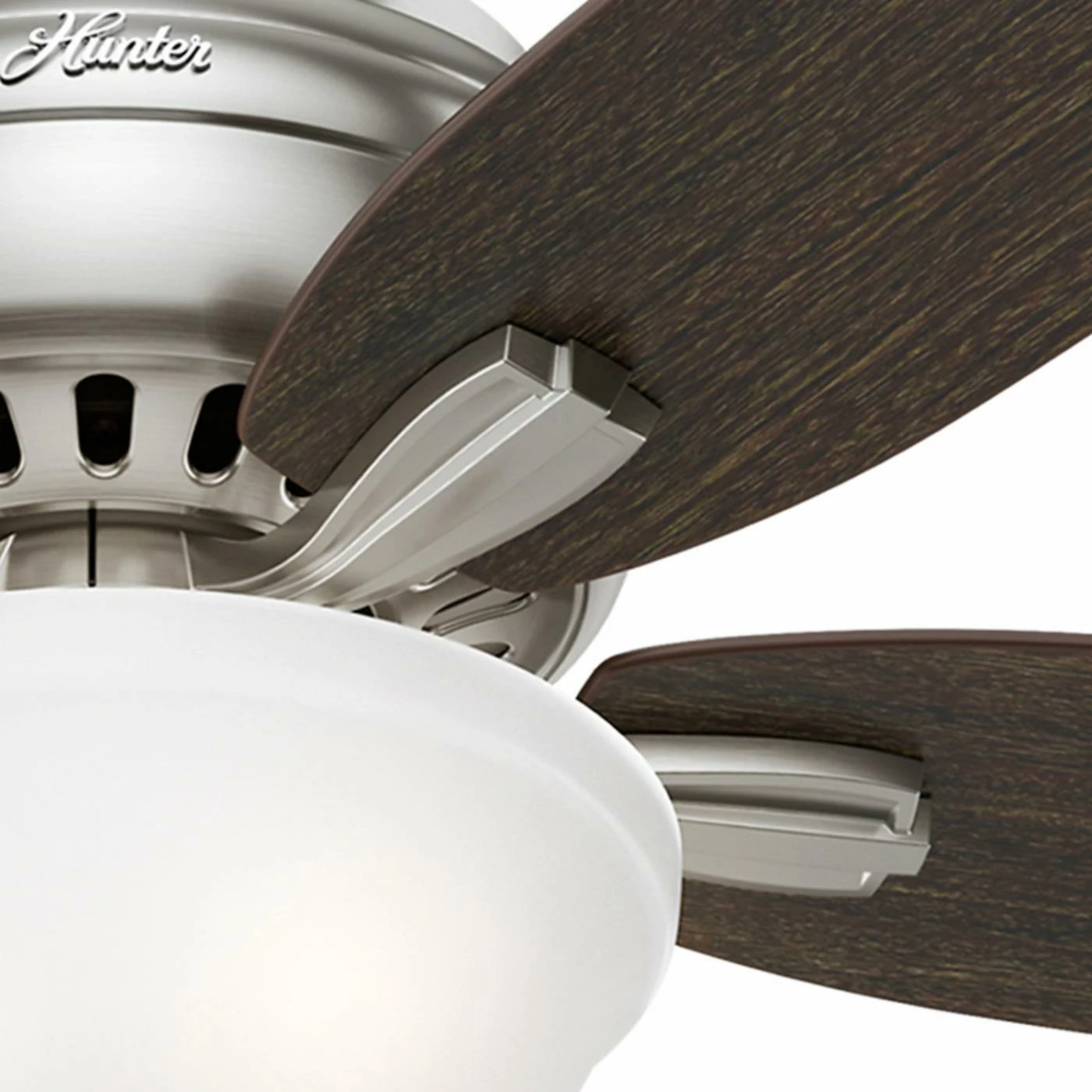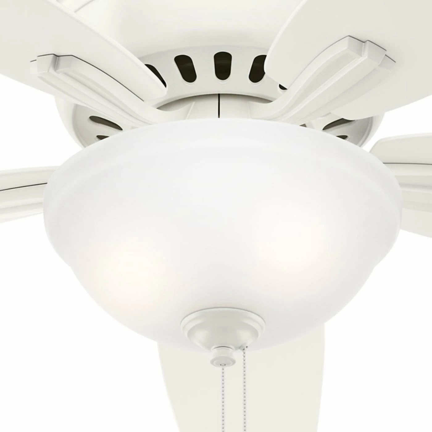 Update, light up, and cool down your space with the Hunter Newsome 53313 52 in. Indoor Ceiling Fan. Its timeless design, finish options, and premium frosted glass bowl shade make this ceiling fan perfect for any room. It requires two 13-watt bulbs (included).
