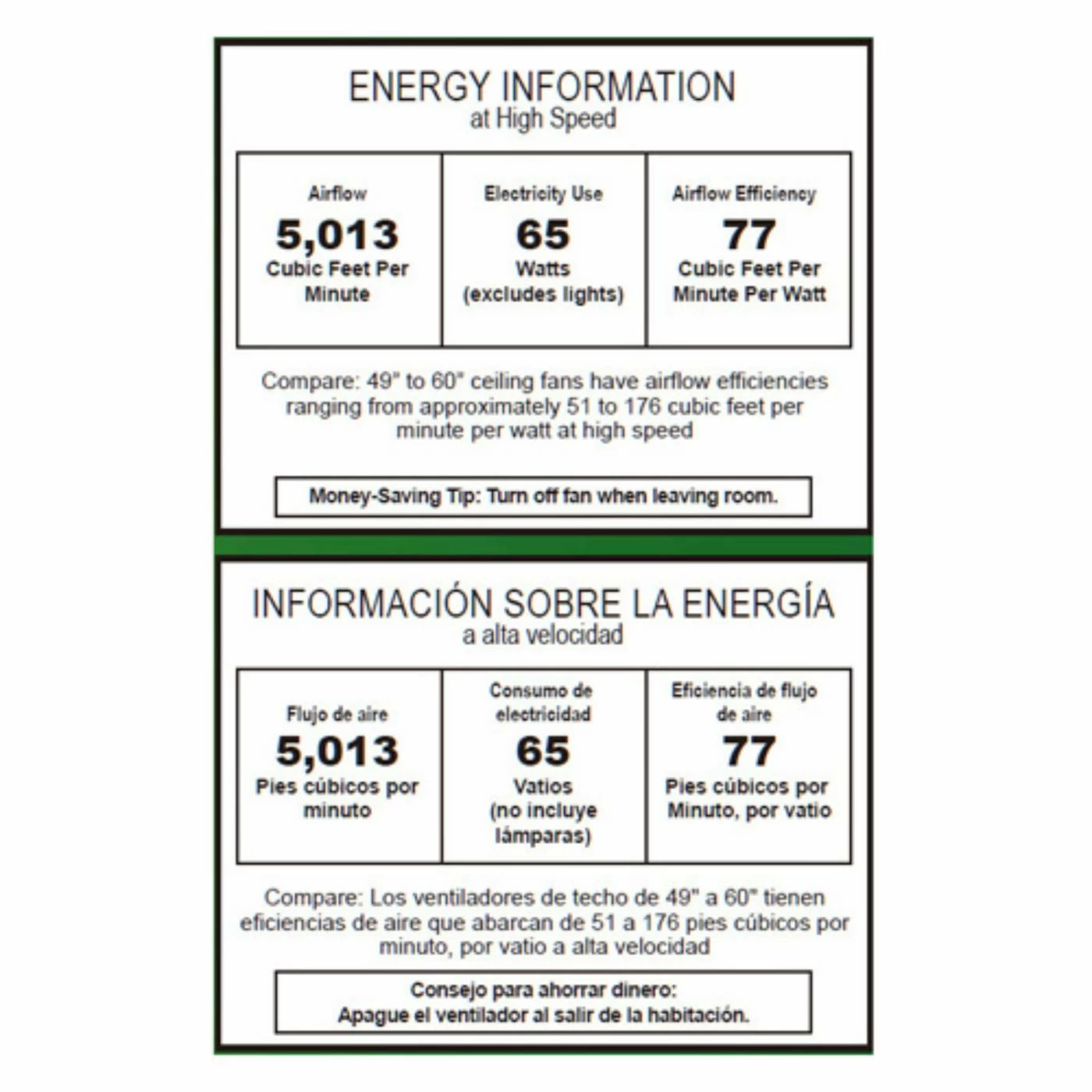 - 52-inch blade span, 13-degree blade pitch
