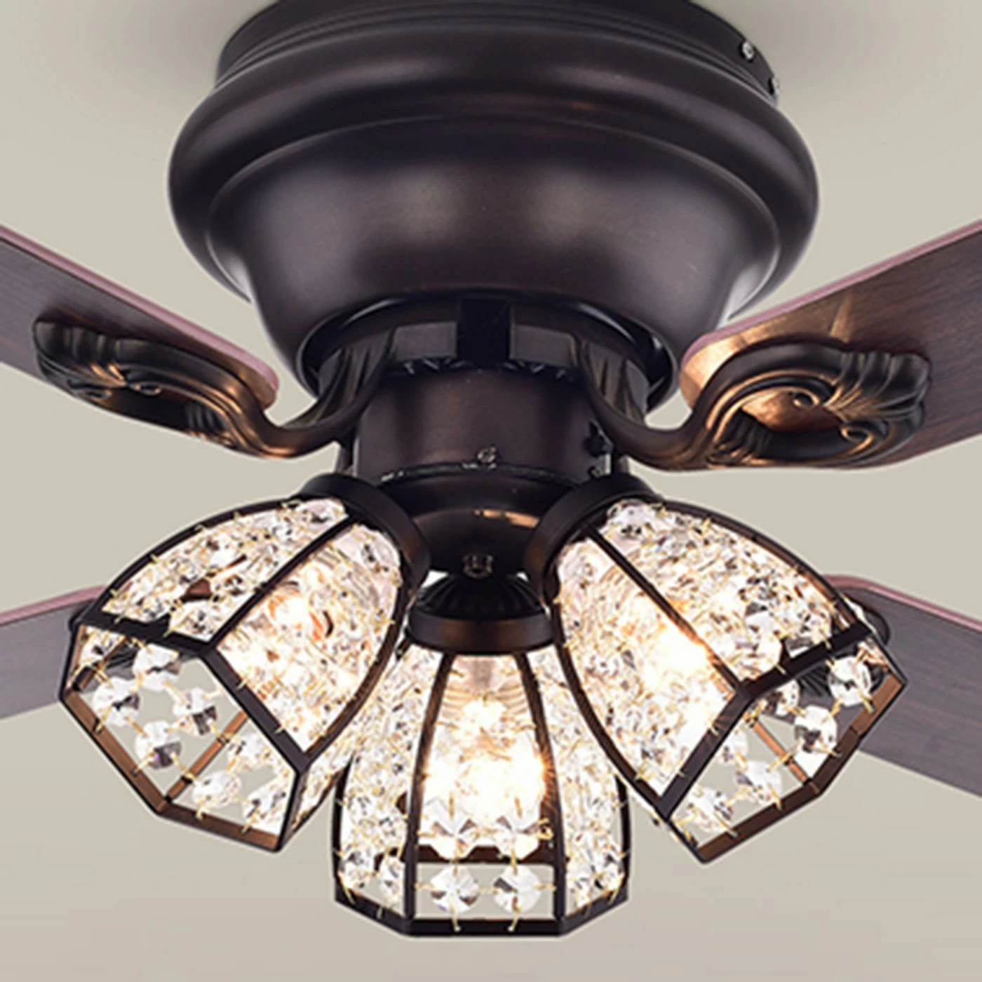 - 4 angled blades with dark brown finish