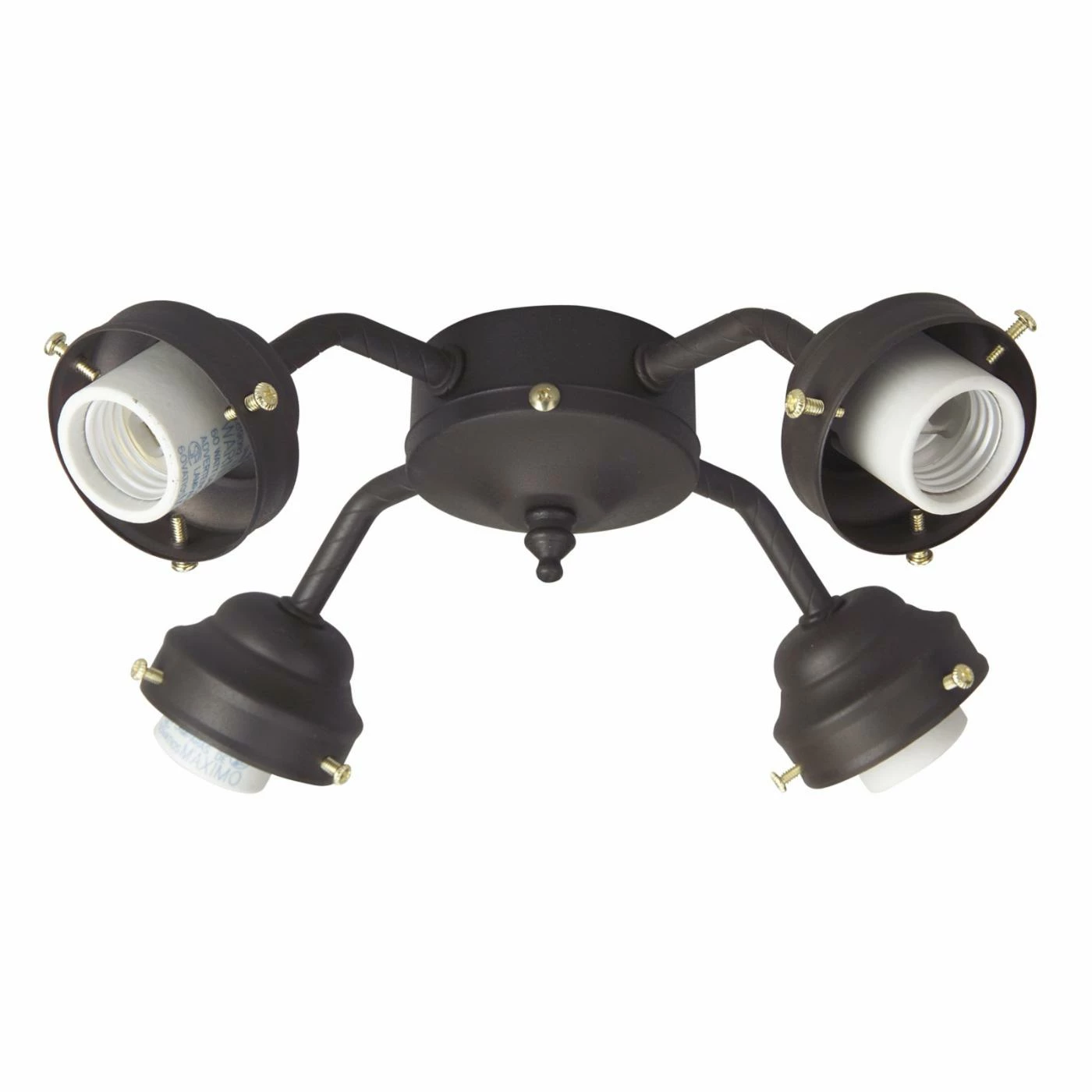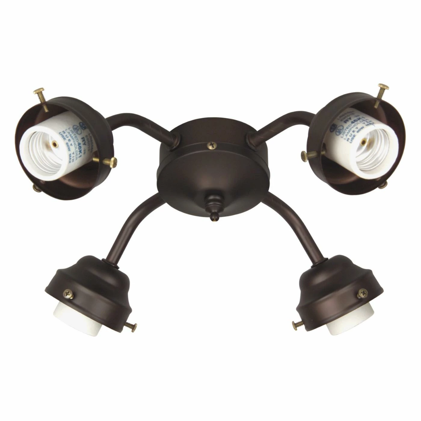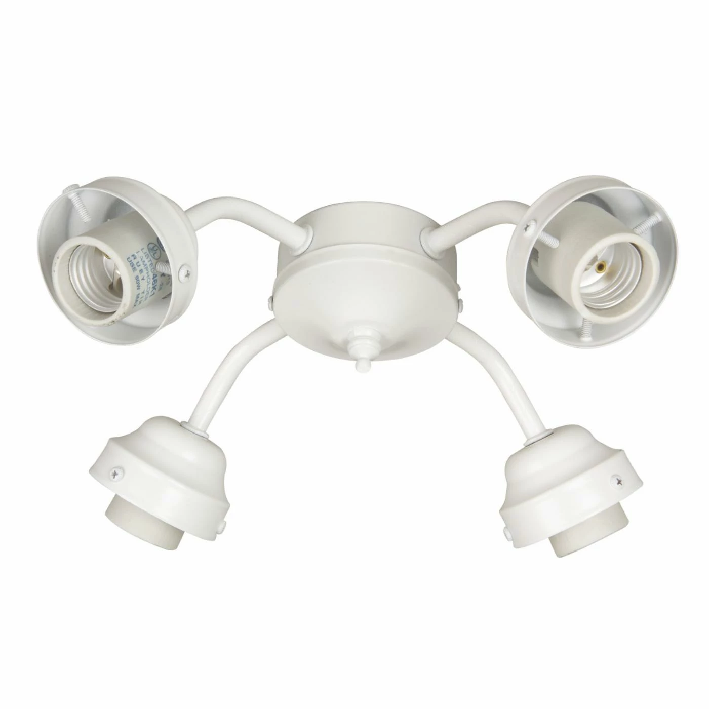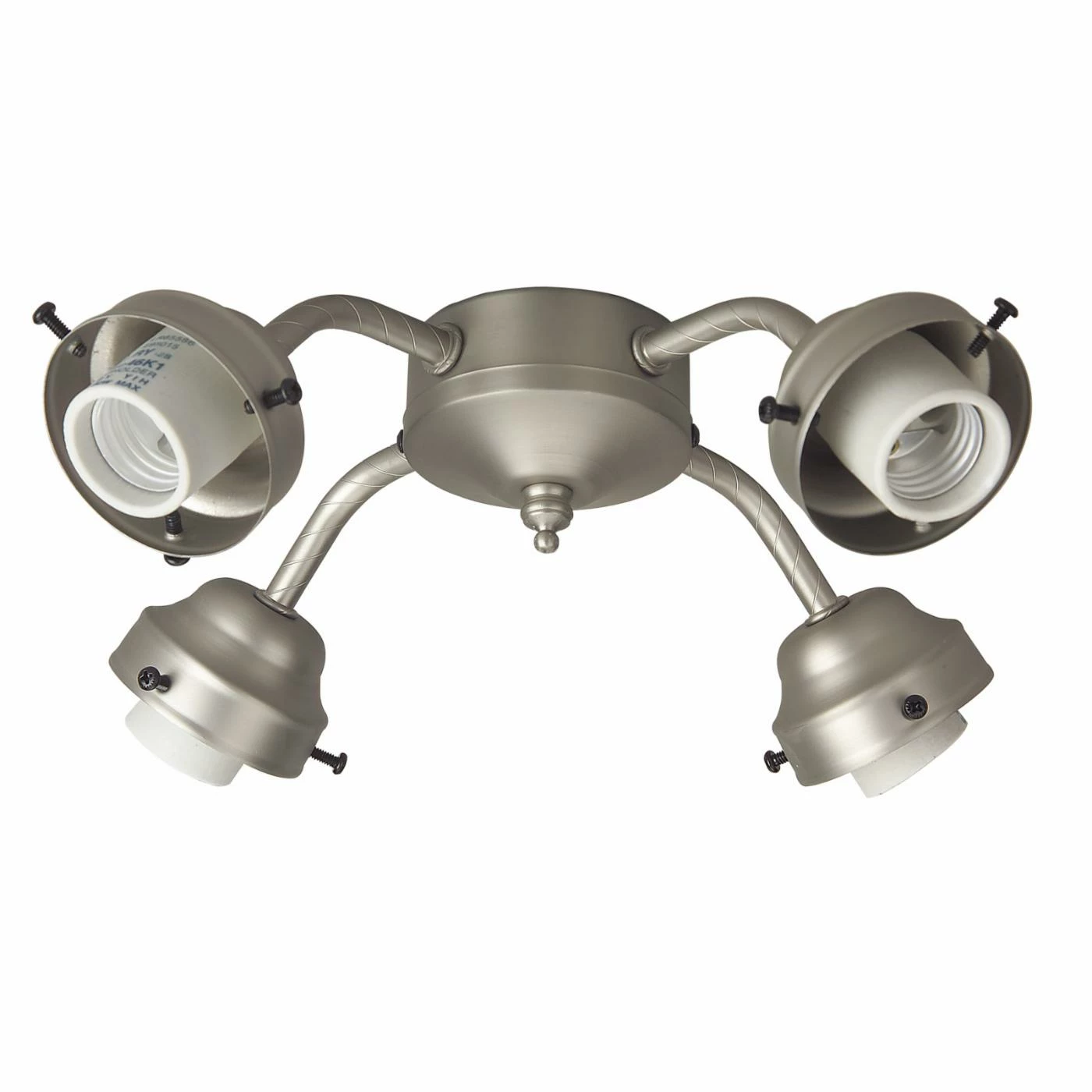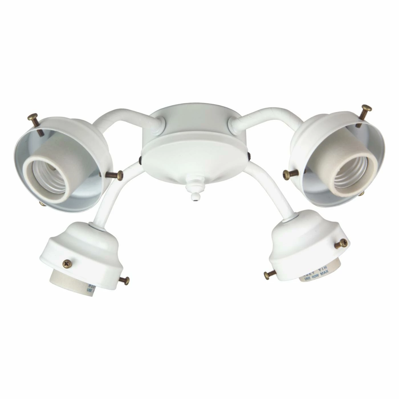 The 8.5-watt Craftmade 4 Light Indoor Ceiling Fan Light Kit has a universal fan mount designed for non-ENERGY STAR ceiling fans. The four sockets can accommodate four medium-base 8.5-watt LED bulbs, allowing you to add an ample amount of light to your space. Each arm points in a different direction to create balanced, multidirectional illumination. This light kit boasts a sturdy metal design that will last for years to come, and it’s available in a variety of popular finishes.