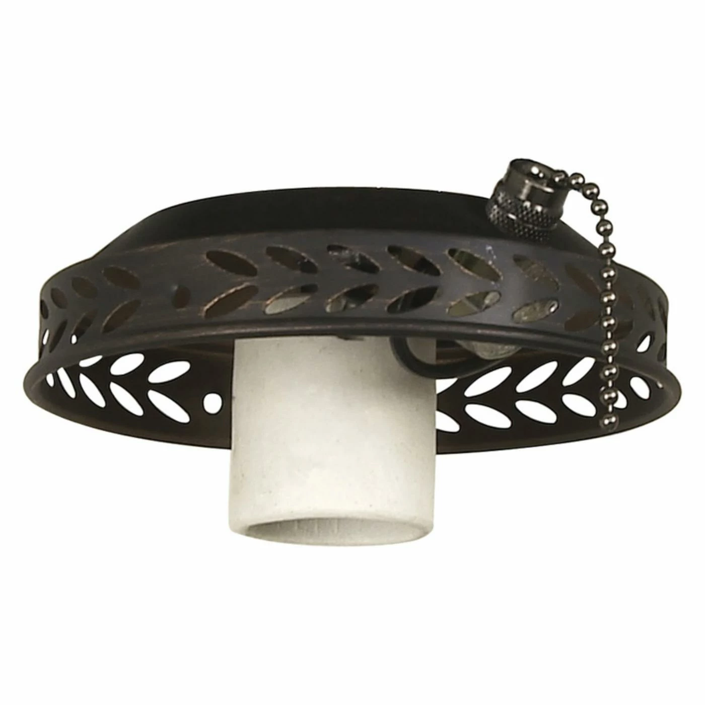 The Craftmade EX14 1-Light Fitter lends simple elegance to your ceiling fan with a metal rounded base accented with leaf-shaped cutouts. This one-bulb ceiling fan fitter is available in a range of gorgeous finishes to help you create the perfect match. Add your choice of shade to complete the look.