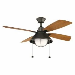 The Kichler Ahrendale Fan Light Kit brings illumination and industrial charm to any indoor or outdoor space. A grid-like metal cage encases the light for eye-catching appeal. It’s even suitable for wet locations, making it perfect for a patio, gazebo, or other outdoor entertaining area. Choose from multiple finish options. This fan light requires one 17-watt LED bulb (included).