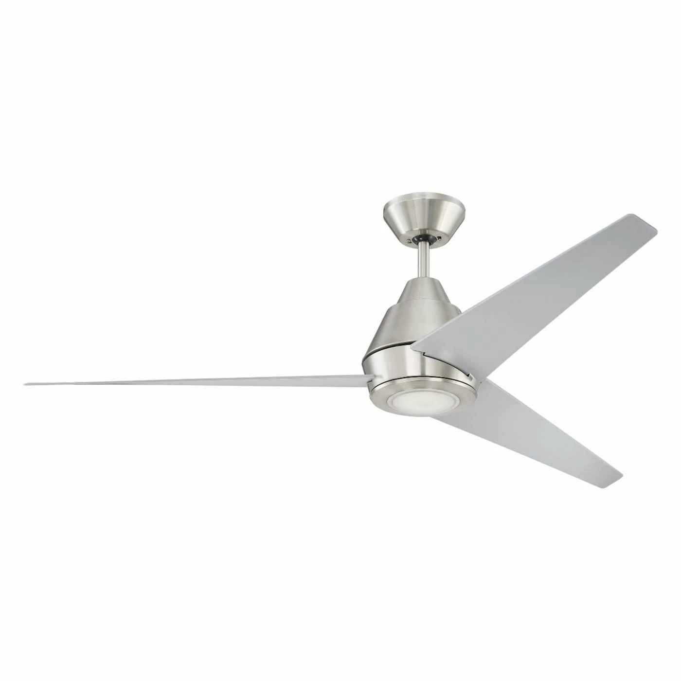 Maintain the minimalist modern vibe of your living space and still enjoy the breeze with the Craftmade Acadian 56 in. Ceiling Fan. Three polished nickel-finished ABS plastic blades and simple, clean lines give it a sleek look that will blend perfectly with contemporary living spaces. An integrated LED light provides energy-efficient illumination diffused by frosted white glass and is dimmable, so you can set the perfect mood in your room. For year-round use, the ceiling fan features a four-speed reversible motor. The dual-mount installation kit gives you the freedom to install the fan on a flat or sloped ceiling with equal ease. This fan requires three-wire, single-gang wiring in the wall.