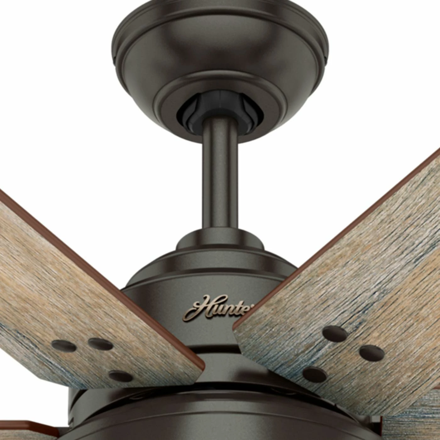 Add a touch of rustic style to your home with the Hunter Warrant Reversible Blade Indoor Ceiling Fan with LED Light Kit. This fan has six blades angled to provide optimal air circulation. A 16-watt LED bulb is included. You can easily adjust the reversible motor and dim the lights thanks to the fan’s wall control. Adjust the motor from downdraft during the summer and updraft in the winter to keep your home comfortable all year long.