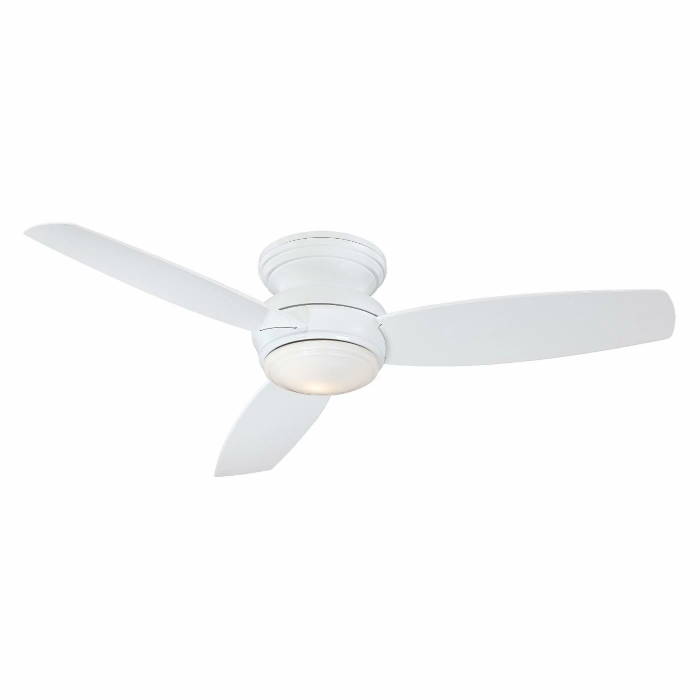 The Minka Aire F594-WH Traditional Concept 52 in. Indoor Ceiling Fan in White provides any room with a clean and contemporary look. This fan and light combination features a white finish with matching white blades. Its 3-blade design offers a modern look and circulates air throughout your living space, giving your AC a break with the help of a powerful yet quiet motor. A single choice of bulb type shines from behind a frosted glass shade to illuminate your surroundings. Adjust light, fan speed, and power with an included wall control unit.