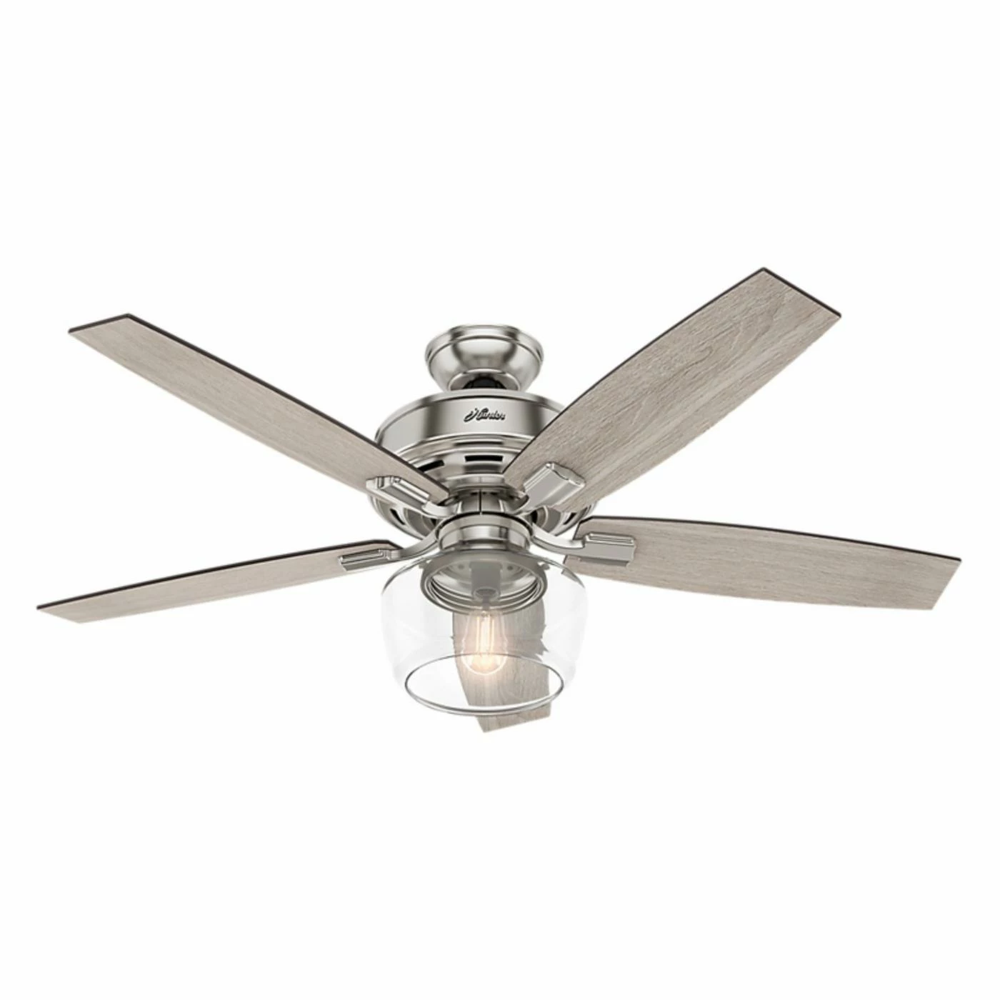 Give your home optimal airflow and industrial flair by installing the three-speed Hunter Bennett 52 in. Indoor Ceiling Fan with Globe Light Kit. The included mounting system makes it possible to do a standard, angled, or low ceiling mount. This fan comes with one LED bulb, which uses less energy and lasts longer than a traditional incandescent bulb.