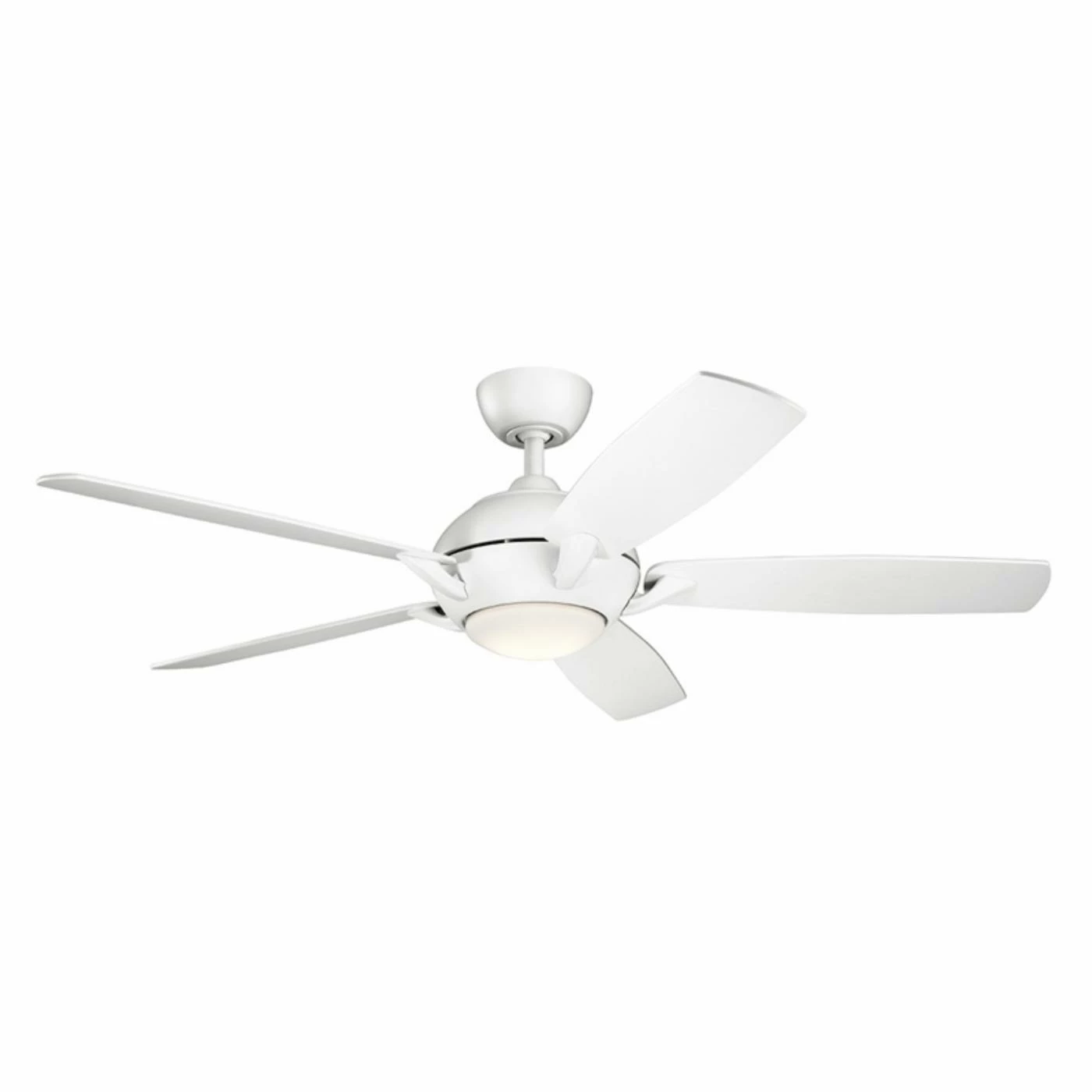 Update any room in bold form with the Kichler Geno 54 in. Indoor Ceiling Fan boasting a truly contemporary design. This durable steel ceiling fan incudes five slender angled blades and comes in assorted finishes to perfectly suit your modern style. A special remote control allows you to change the three speed options easily, and the integrated LED light kit adds brightness combined with energy savings.