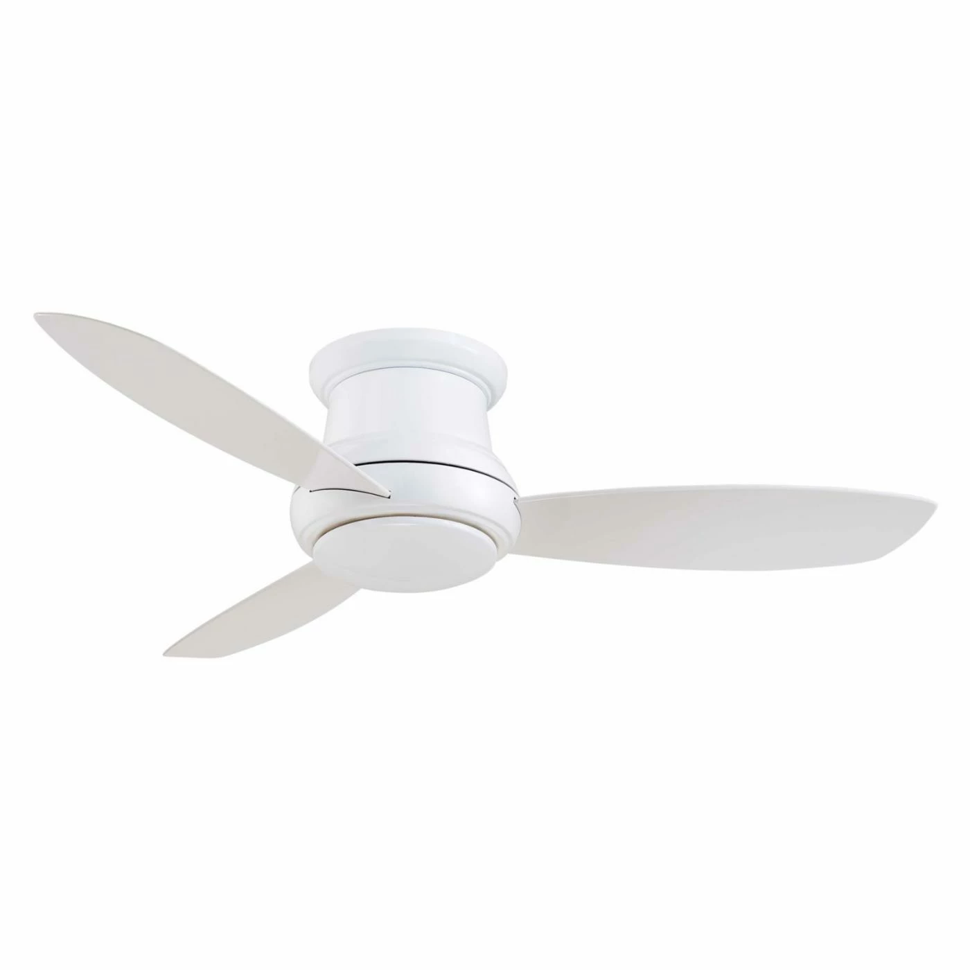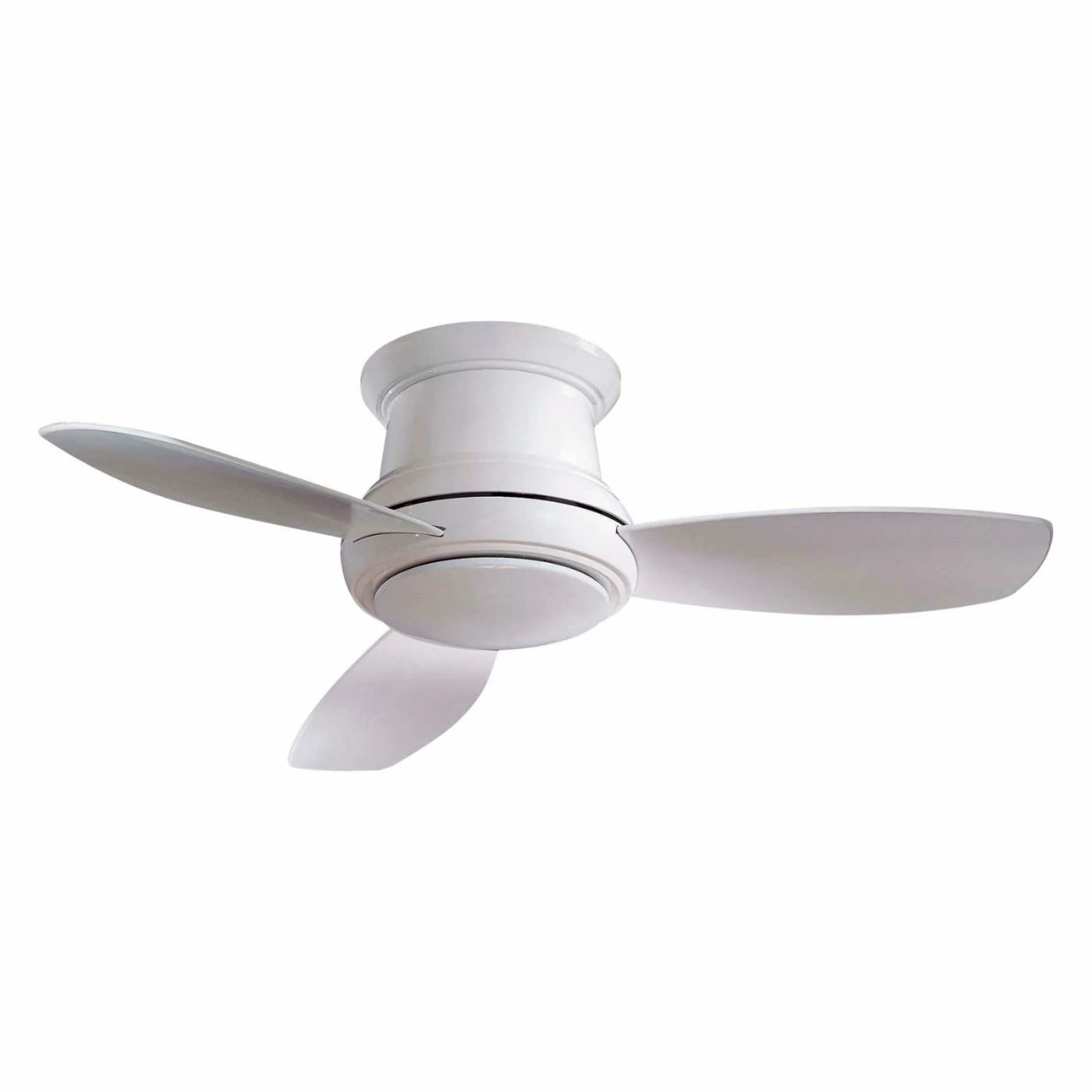 The Minka Aire F518-WH Concept I 44 in. Indoor Ceiling Fan in White is a great way to keep your room cool while adding the perfect touch of modern style to your decor. This contemporary-style fan features a smooth and rounded profile with a crisp white finish and three blades in matching white. Its quiet motor provides a steady flow of air that keeps you comfortable even in larger rooms. A center light shines behind a frosted glass shade and provides plenty of light with a choice of bulb type. Control your comfort from anywhere in the room with the included full-function remote that lets you easily adjust power, speed, and illumination.