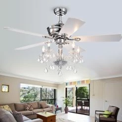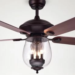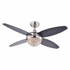 The Warehouse of Tiffany Angel 43 in. Indoor Ceiling Fan offers you a glamorous way to catch a cool breeze. It has elegant bronze metalwork complemented by versatile brown blades, and it has a shade designed from crystals encasing the three-bulb fixture.