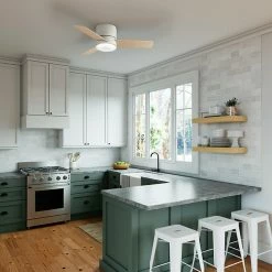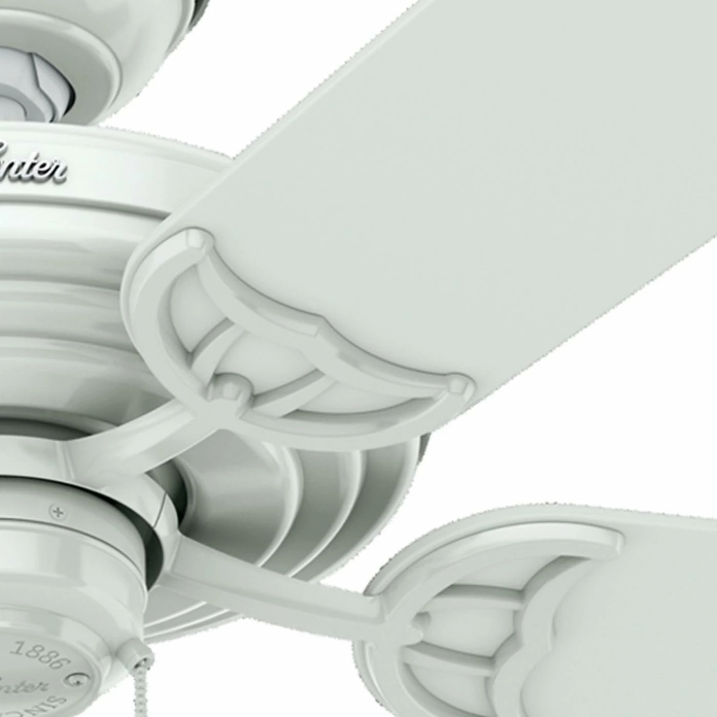 Keep your outdoor living area as comfortable and stylish as your indoor one with the Hunter Sea Air 53054 52 in. Outdoor Ceiling Fan . This ceiling fan has a simple, classic design and five blades in a bright white finish that brightens any space. It offers three speeds and pull chain operation that make it a breeze to use.